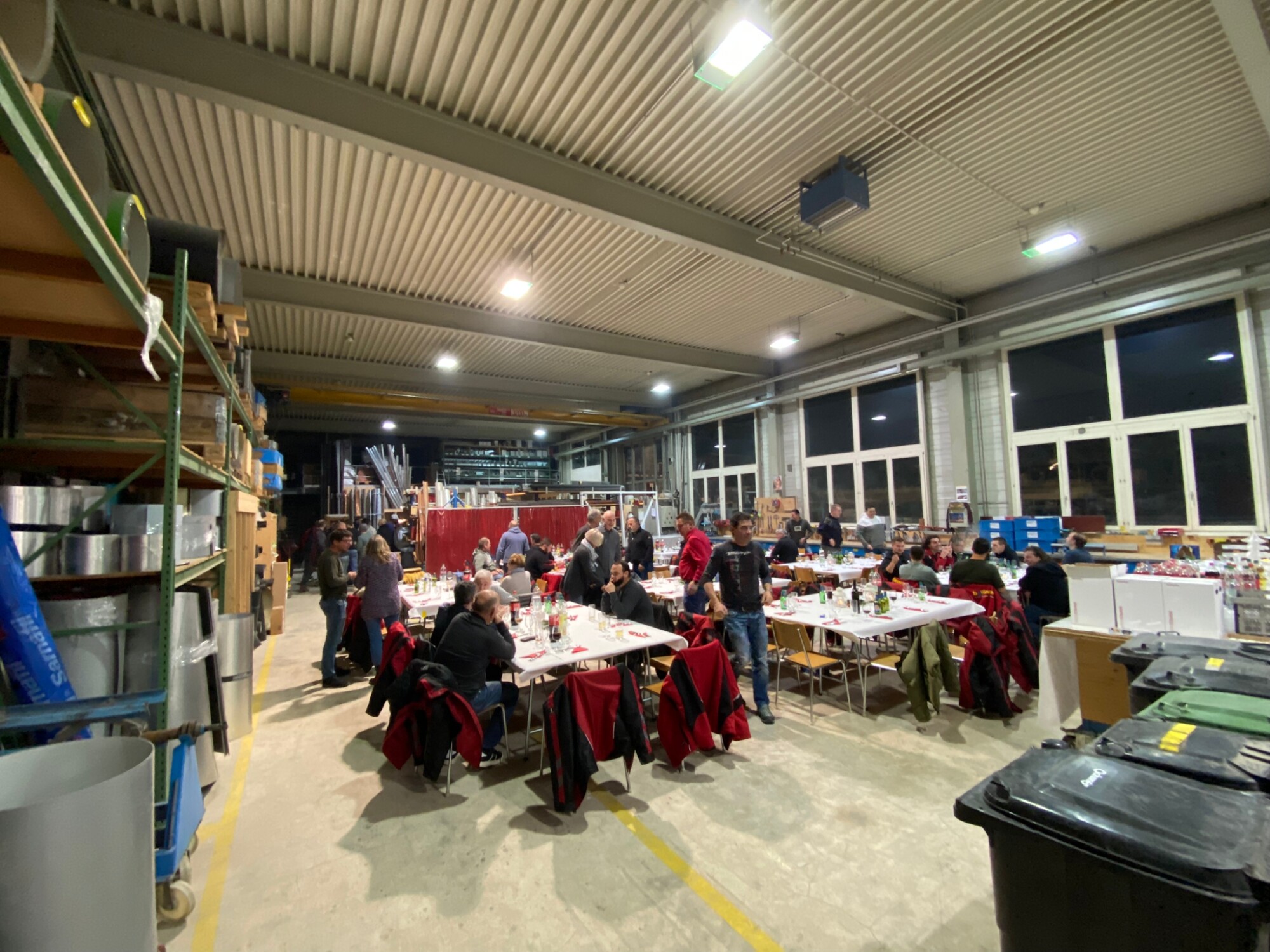 Wir trafen uns in der Gerberstube. Dort gab es einen feinen italienischen Apéro danach kam der obligatorische Glühwein/Punsch auf dem Froni zum Zuge. Das Abendessen genossen wir in unserer Werkstatt an der Mühlentalstrasse.