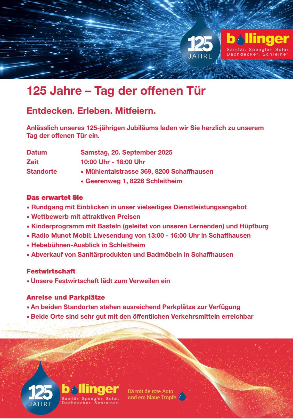 Willkommen im Team! Wir freuen uns, unsere neuen Lernenden bei uns begrüssen zu dürfen! Sandro, Cedric und Shpend starten ihre Lehre als Sanitärinstallateure Richard beginnt seine Ausbildung als Spenglerpraktiker Wir wünschen euch einen erfolgreichen Start und eine lehrreiche Zeit! ...